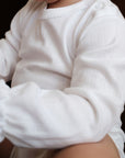 A timeless essential with a delicate twist. This long-sleeved body is made from 100% OEKO-TEX® certified organic cotton and features soft, elastic cuffs finished with a subtle piquette (wavy) edge. These charming details add a nostalgic touch while ensuring a comfortable, secure fit for your little one — all without compromising freedom of movement.