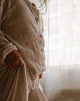 We developed this cardigan because we couldn’t find anything quite like it—a woolen layer that isn’t too thick but provides just the right amount of warmth. Crafted to be the perfect extra layer, this 100% wool, long-fit cardigan is ideal for keeping your little one cozy without the bulk. It’s perfect over pajamas on chilly mornings or evenings, offering warmth when they’re not in bed. Whether used as a thermal layer on colder days or simply worn as a lovely woolen vest, this cardigan’s versatility makes it a must-have for every season.